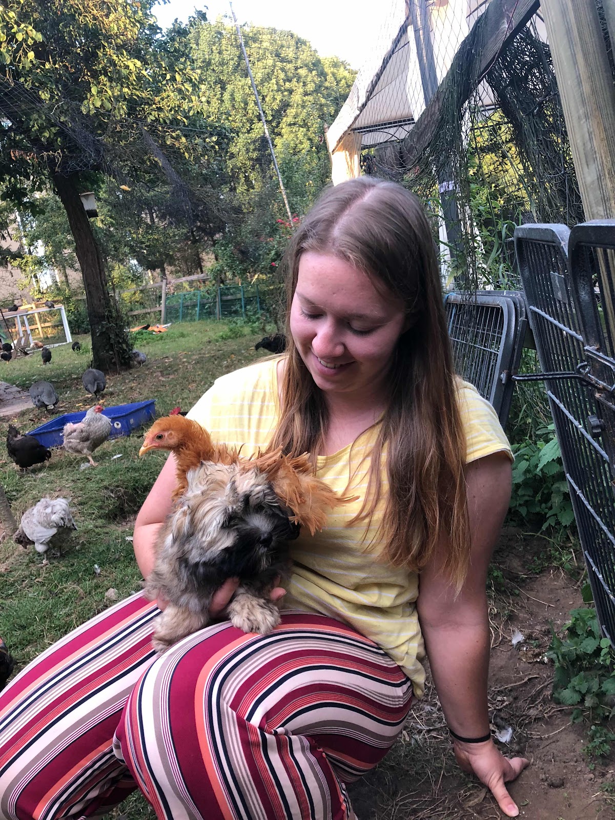 Und ehe sie sich versah flog schwuppdiwupp eines der kleinen Strupphühner auf den Schoß 😂
