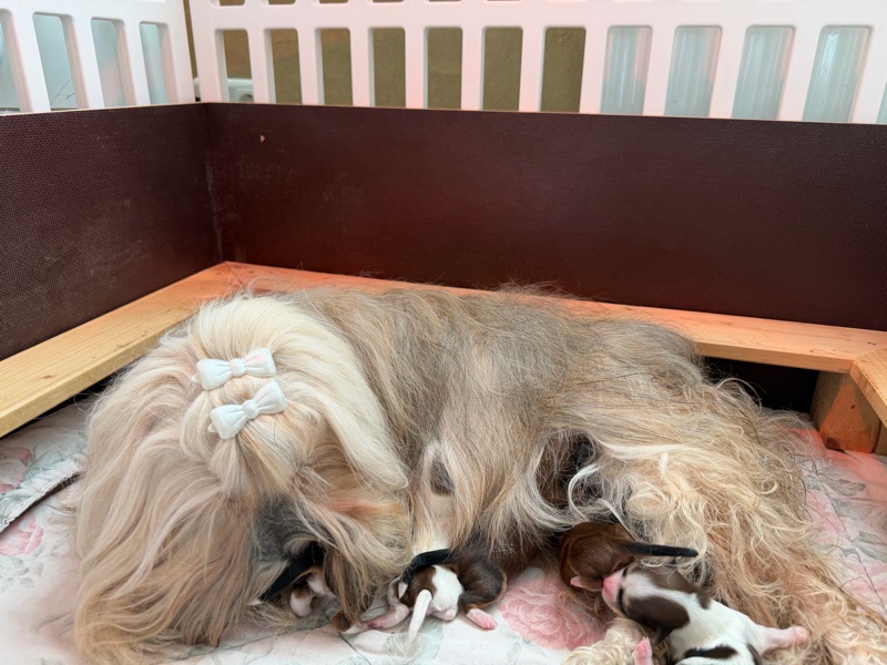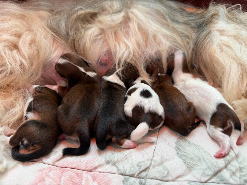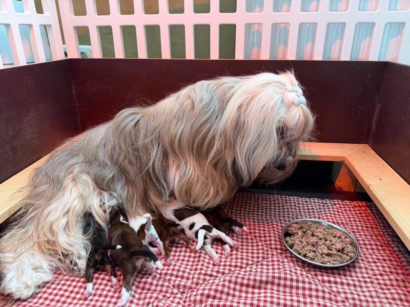 Eine kleine Maus wird sogar den Namen ihren Mama weiterführen und soll auch Esti heißen. Wir freuen uns sehr darüber. Wer uns noch spontan kennen lernen möchte ( selbstverständlich ohne Besuch bei den noch viel zu kleinen Welpen) kann einen Termin für Sonntag den 12.04.2026 ab 12:00 vereinbaren. (Nur nach Absprache) Dann hat man die Chance bei den anstehenden Kindern von Lily oder Clara früh aussuchen zu dürfen. So war es bei “Klein-Esti” auch. Die Familie war bereits hier um sich uns und unsere Zucht anzusehen. Wir haben uns die Familie genau angeschaut. Und da es von beiden Seiten passte, bekamen sie eine Zusage für eine Tochter von Esti.